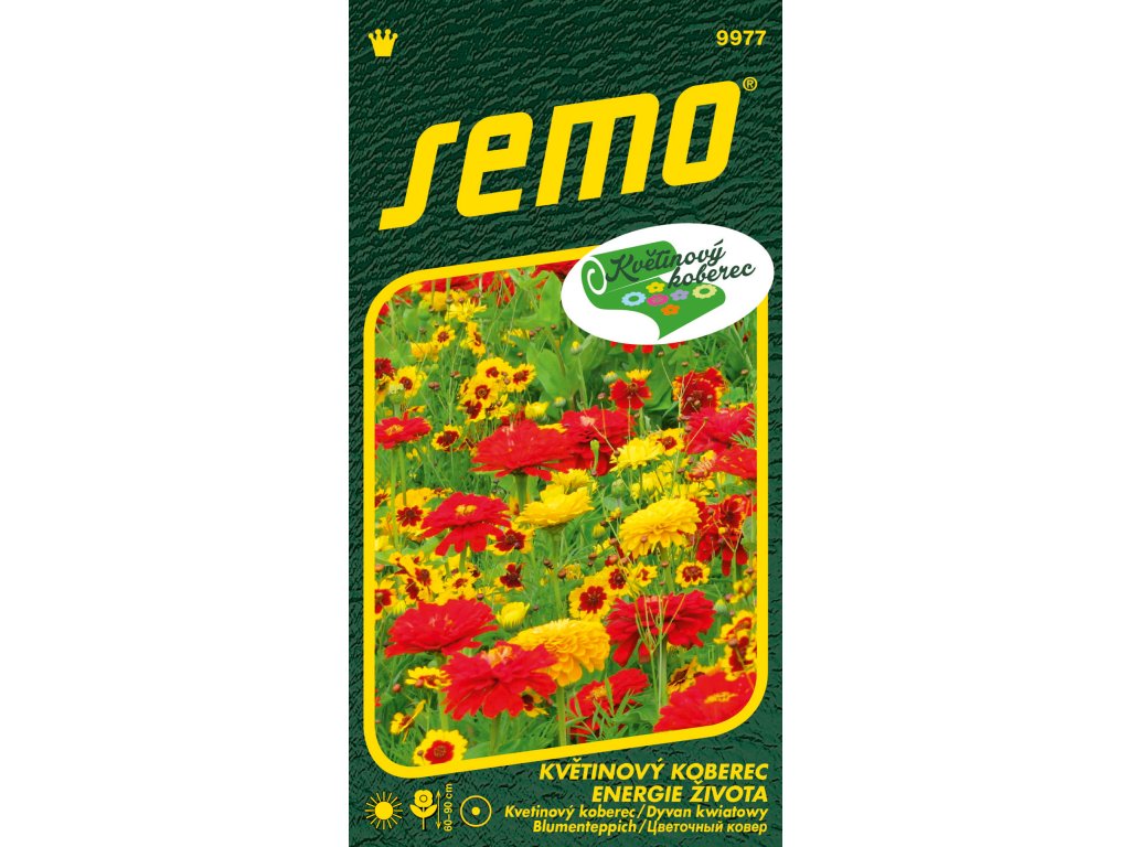 ENERGIA ŽIVOTA (kód kolekcia KVETINOVÝ KOBEREC - zmes zložená zo 7 letničiek, ktoré nám svojou sýtou a jasnou farbou predstavujú rozkvitnutú energiu okamihu. Kvety v podaní žltých a červených tónov cínie, aksamitníka, krásnoočka a titónie nás nenechajú v pokoji. Letničky vysievame od apríla do júna, doba kvetu je júl až september, vždy v závislosti od výsevu. Výška kvetinového koberca je 60-90 cm.