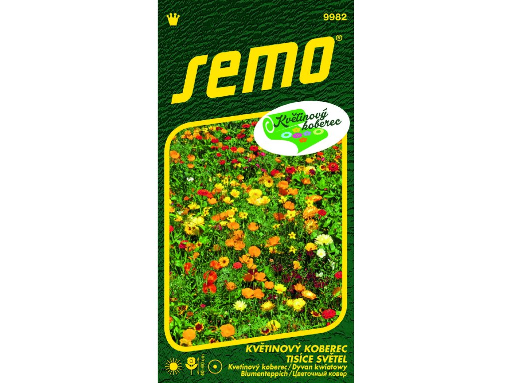 Hra svetiel a farieb, to je kvetinový koberec v teplých odtieňoch žltej, oranžovej a horúcej červenej farby, ktorý nám navodzuje pocit bezpečia a pokojného teplého večera. Ako prejasnenie teplých odtieňov pôsobí fragment bielej farby v podobe cínie a maku. Vysievame v máji až júni, kvitne v júni až septembri. Výška rastlín je 40 –60 cm. Zmes je zložená z 16 letničiek, napr.: cínia, aksamitník, plamienka, krásenka, koniklec, krásnoočko, mak, lupina…
