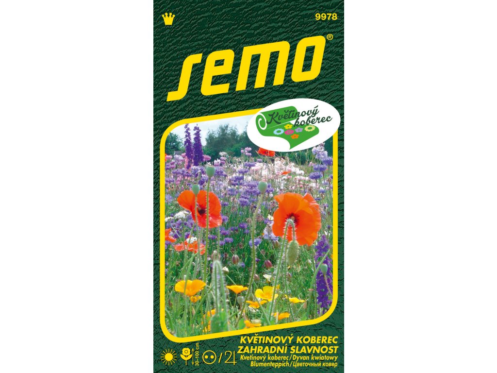 ZÁHRADNÁ SLAVNOSŤ (kód kolekcia KVETINOVÝ KOBEREC - zmes zložená z 12 dvojročných a 21 trvaliek, prepája vidiecku záhradu s nadväzujúcou lúkou. Ľahko a bez plotu budete začiatkom leta prechádzať medzi kvetmi nevädze, maku, margaréty i lupiny. Letnú atmosféru doplní aj vôňa večernice, ktorá privábi nejedného nočného motýľa. Časom sa pripojí kokarda, mavuň, hvozdík a ďalšie rokmi preverené trvalky. Vysievame v júni až júli, zmes kvitne v budúcom roku od konca mája. Výška rastlín je 30-100 cm.