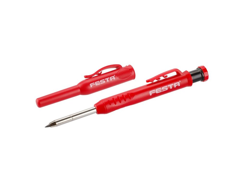 špeciálny popisovač FESTA s tuhou tvrdosťou HB v puzdre konštrukcie popisovača - priemer len 6 mm - umožňuje presné značenie aj na horšie prístupných miestach ľahký posuv tuhy stlačením hornej časti, kde sa nachádza aj strúhatko na tuhu náhradné tuhy je možné objednať pod číslom 13263 - čierne, 13267 - fariebDodatočné parametre