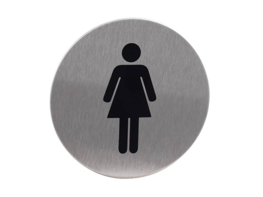 Znak rozlišovacej "WC-ženy", Ø 75 mm, samolepiaci, nerez