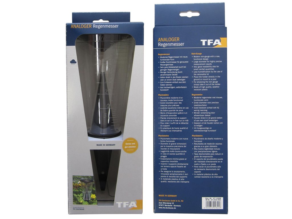 Zrážkomer pr. 12,2 x 30,5 cm. priemer: 12,2 cm výška: 30,5 cm materiál: plast hmotnosť: 227 g - určite množstvo zrážok ľahko a presne - ideálne na použitie v záhradníctve a poľnohospodárstve - odolné voči poveternostným vplyvom - plastový držiak na umiestnenie do zeme alebo na upevnenie na tyč (tyč nie je súčasťou balenia) - odnímateľné viečko v tvare trýchov zároveň chráni proti odparovaniu - dobrá čitateľnosť aj pre malé množstvo zrážok - rozsah merania: 0 - 70 mm/m2 - s veľkým priemerom a ochranou proti vyparovaniu - odolný voči poveternostným vplyvom Moderný zrážkomer v novom funkčnom dizajne, z plastu odolného voči poveternostným vplyvom, pre ľahké a presné určenie množstva. Vďaka veľkému priemeru získate obzvlášť presné údaje a stupnica je ľahko čitateľná aj pri malom množstve dažďa. Veko v tvare lievika chráni pred odparovaním. Praktický držiak je možné buď zapichnúť priamo do zeme alebo pripevniť na tyč.Dodatočné parametre